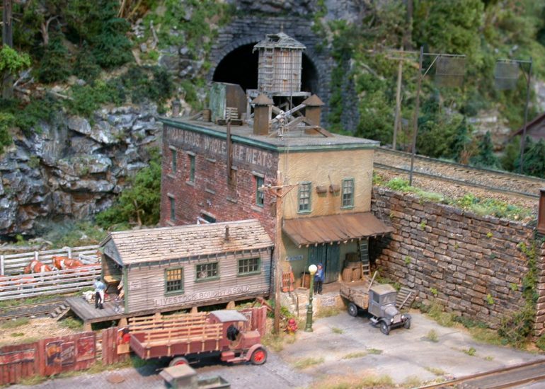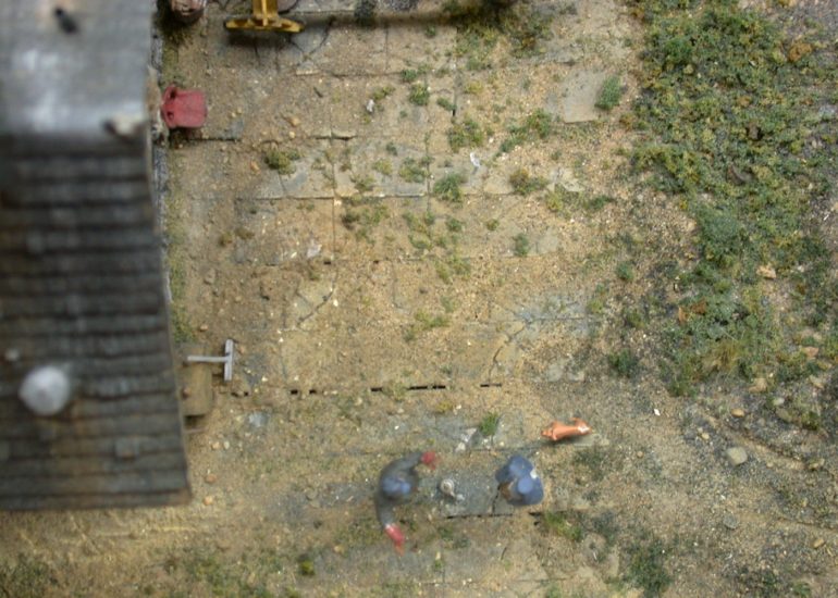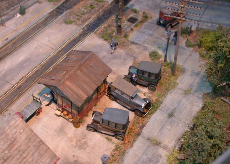 Though George is known best for his detailing and structures, he does a masterful job at scenery. This overhead shot shows the different textures and the car ruts that make for a great scene.