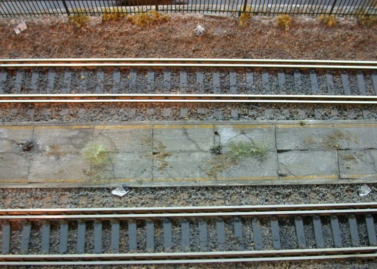 Lots of variation in the track weathering. Check out the construction pics to see how he paints ties