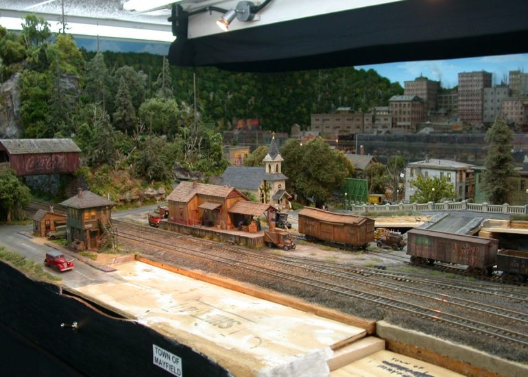 Heads up on the Chesterville platform! A freight loops its way around on its way to Mayfield
