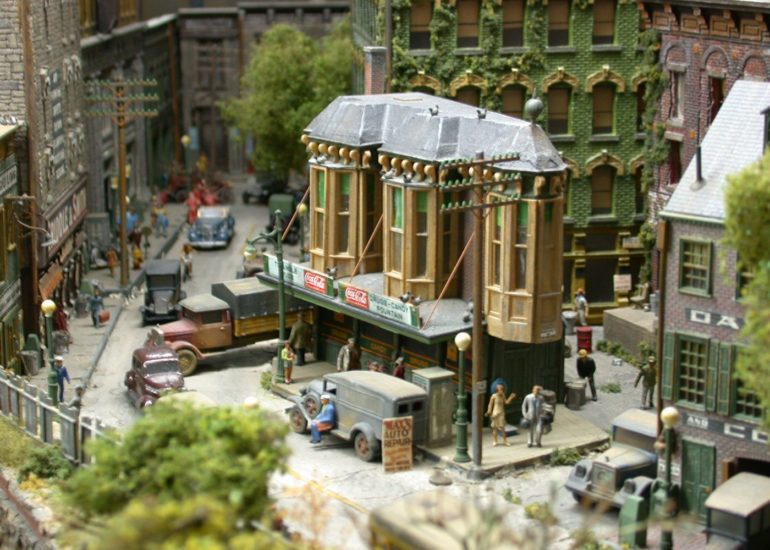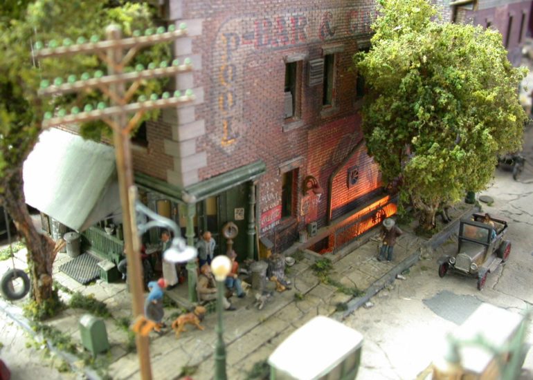 Notice all the mini-scenes in this shot. The building is a favorite of mine and I believe is based on an IHC kit. Signs add a lot to liven things up and George is a master of signage