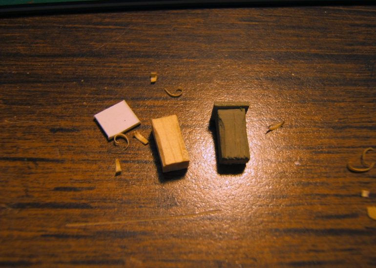 Here's how I built the posts in the above pictures. Wood and styrene. I didn't use these on the stairs, but they ended up on the roof.