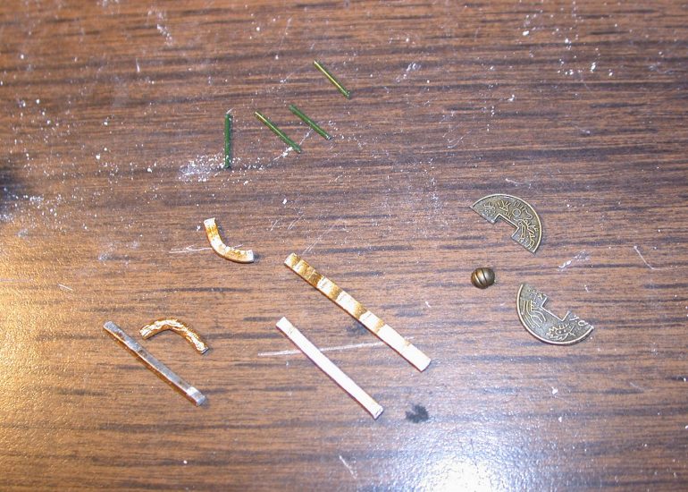 Here are some of the parts I used. The long gold parts are cheap rings that I cut apart and then bent straight. Cutting and filing metal isn't a fun thing, but there are a lot of neat details available.